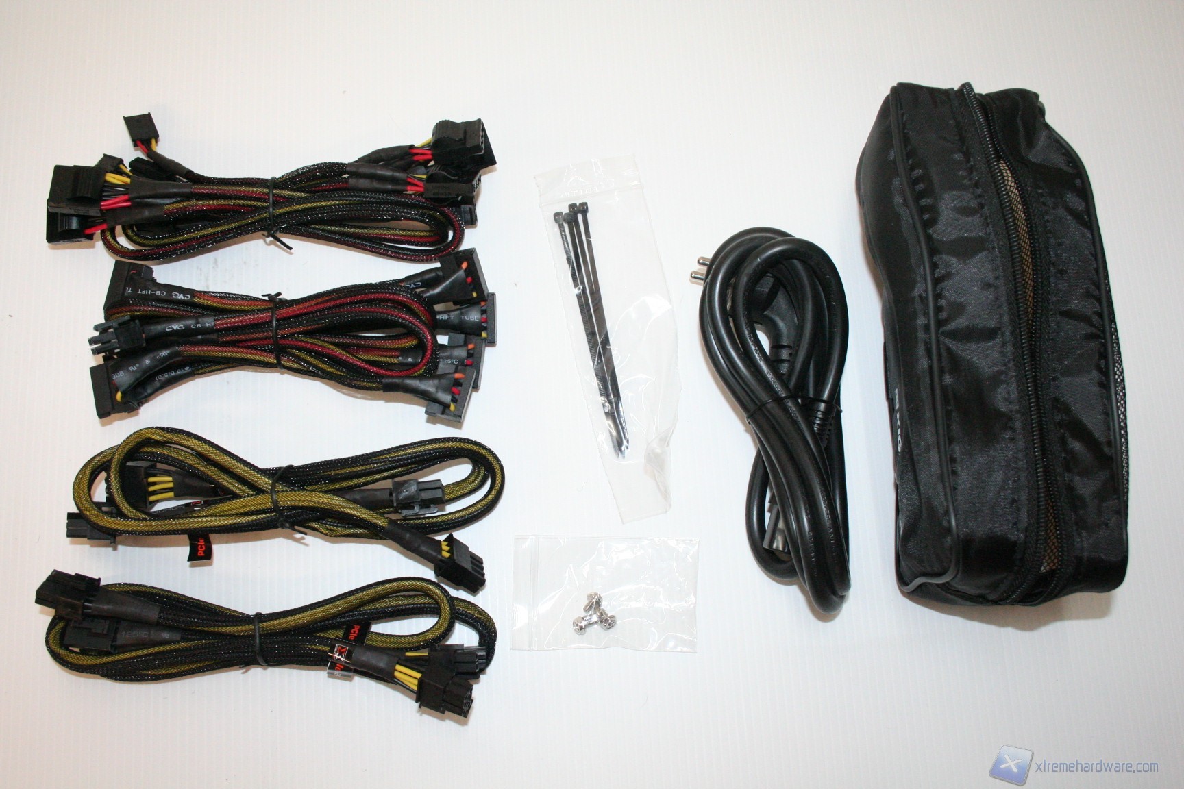 La lunghezza dei cavi è fantastica, soprattutto per quanto riguarda il connettore di alimentazione della CPU da 8 PIN posteriore, che raggiunge i 70cm per il connettore primario e ben 94 per il connettore secondario, annesso; questo ci permetterà di installare l’alimentatore anche in basso, in cabinet XL-ATX, e senza il minimo problema per il cable routing. Una caratteristica del genere dovrebbe diventare lo standard di produzione, un plauso quindi a Xigmatek per l’adozione di questo design nelle proprie unità. Consigliamo sempre di acquistare prolunghe, soprattutto per la 24 PIN ed il connettore di alimentazione da 8 PIN della scheda madre però in questo caso non ve ne sarà necessità. Data la presenza di due connettori da 6+2 ed 8 PIN, più svariati Molex e connettori di alimentazione SATA, sarà possibile alimentare un sistema dalla potenza molto elevata. L’alimentatore è parzialmente modulare e risulta essere classico, e buono lo sleeving dei cavi, come la tipologia dei connettori modulari.